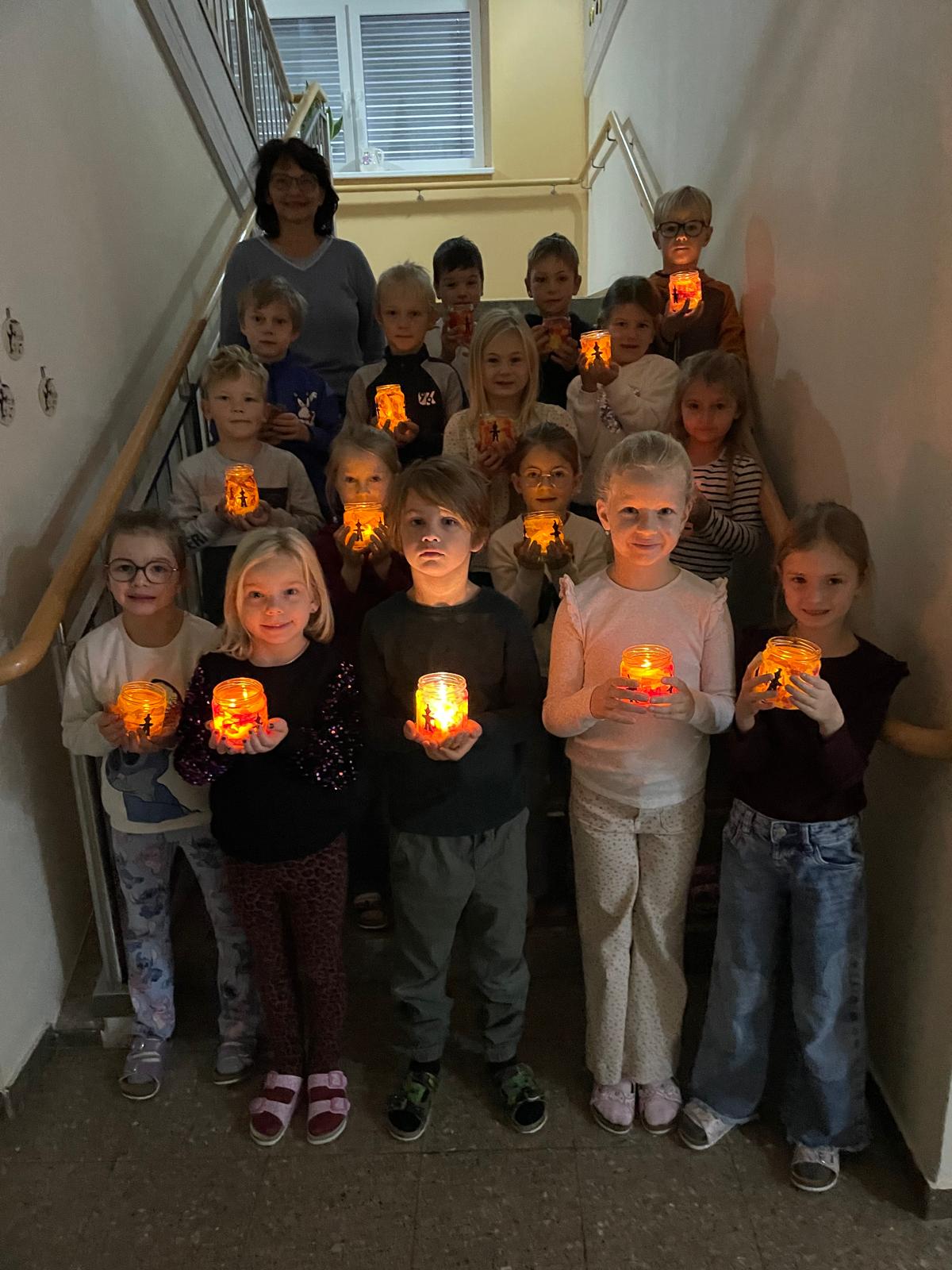 Mit den selbstgestalteten Lichtern besuchten die Kinder der 1a Klasse die 3b Klasse zum Vorlesen. Dann durften die Kinder anlässlich des Namenstags vom hl. Martin mit ihren Lichtern noch alle anderen Klassen besuchen und etwas Strahlen, Licht und Wärme verbreiten.