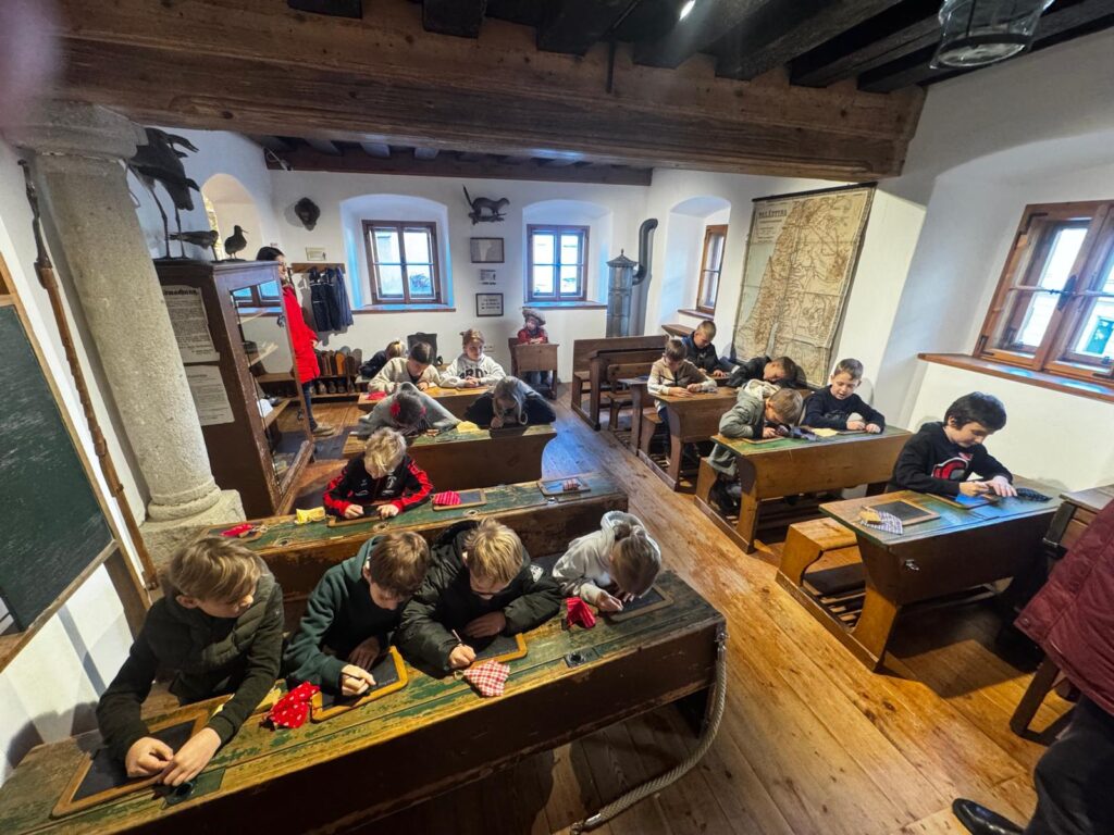 Gleich zu Beginn durften wir ein historisches Klassenzimmer besichtigen. Die alten Holzbänke, der Ofen und das Lehrerpult machten dautlich, wie anders der Unterricht früher ausgesehen hat. Besonders beeindruckend war auch der Stummfilm, auf welchen sich die Schüler und Schülerinnen früher schon wochenlang gefreut haben. Für uns heute fast unvorstellbar.