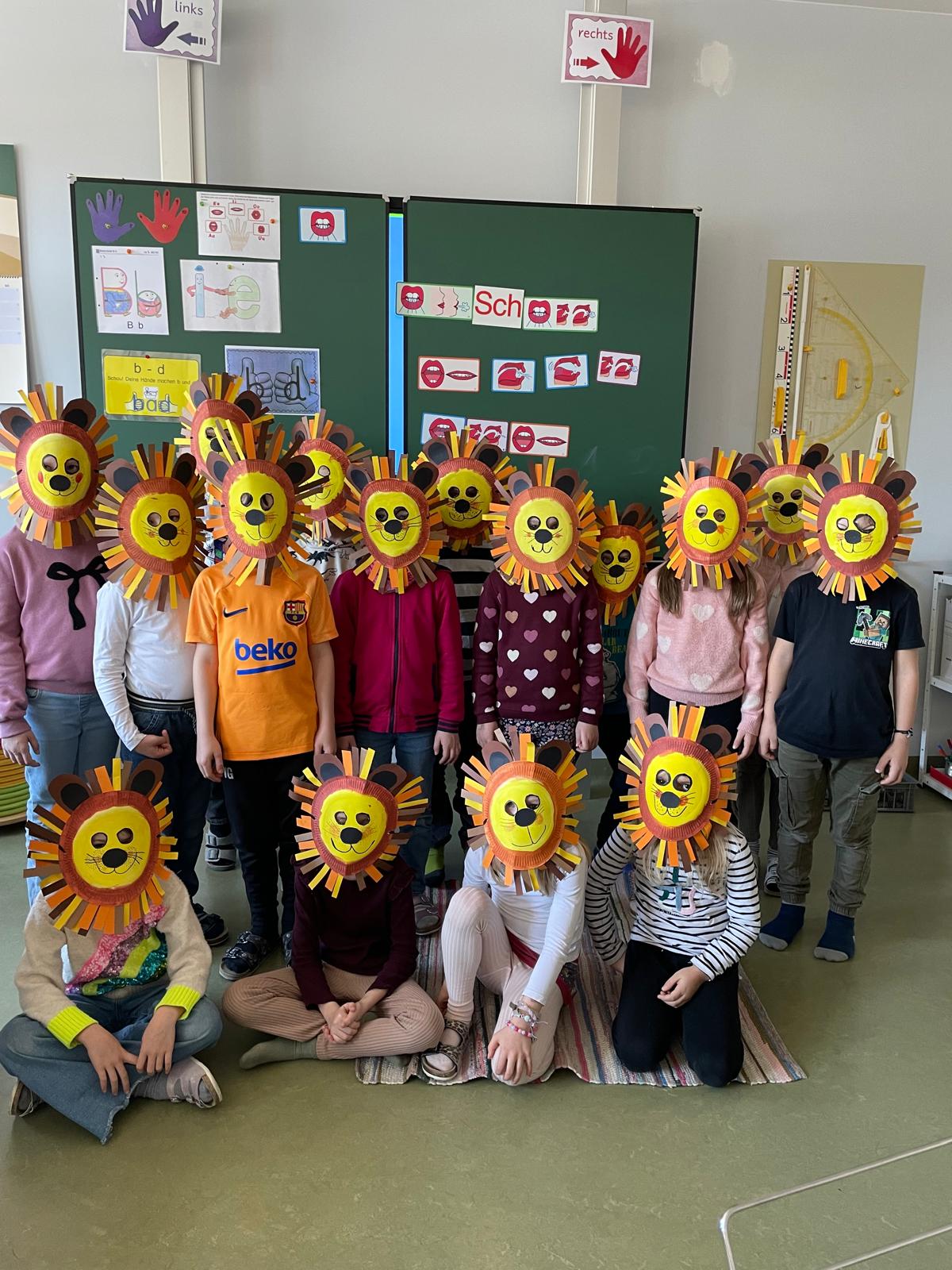 Löwenmasken der 1a KlasseJanuar 30, 2026 1A Klasse JG 2025/2026 Passend zum Fasching haben sich die Kinder aus der 1a Klasse Löwenmasken gebastelt.